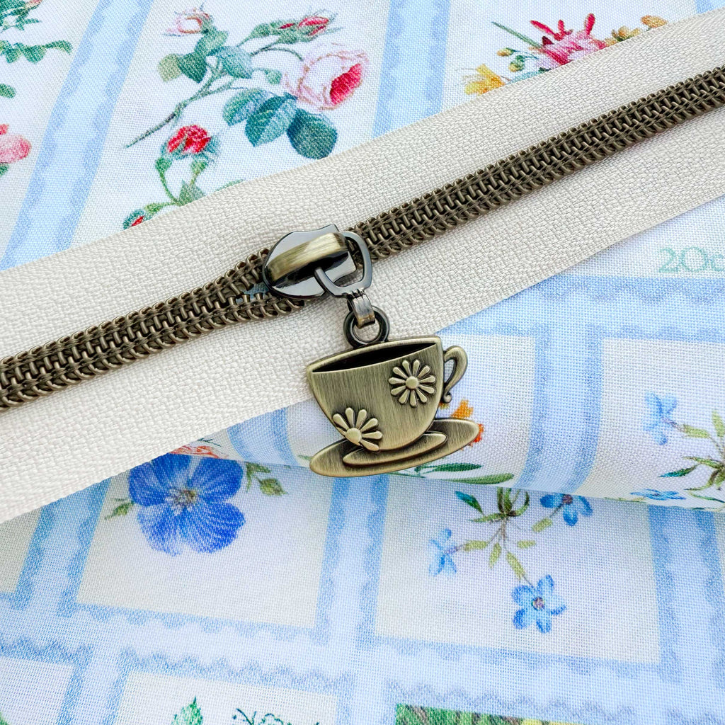 Antique Tea Cup and Saucer Pulls for #5 or size 5 nylon zipper tape.