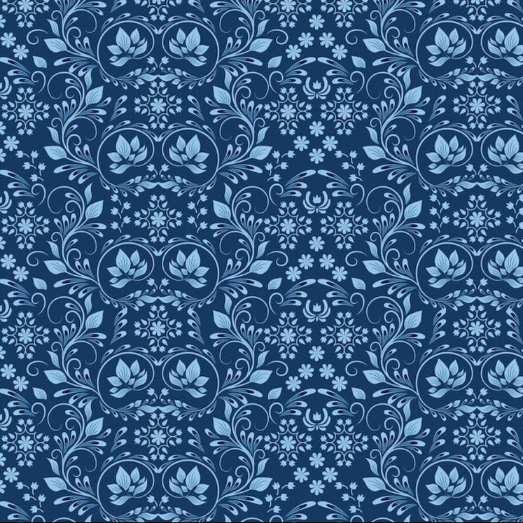 Blue And Marble by Stof Fabrics features florals in blue and white.