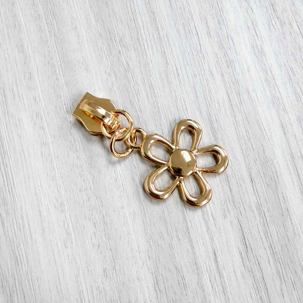 Vintage Gold Flower Pulls for #5 or size 5 nylon zipper tape.